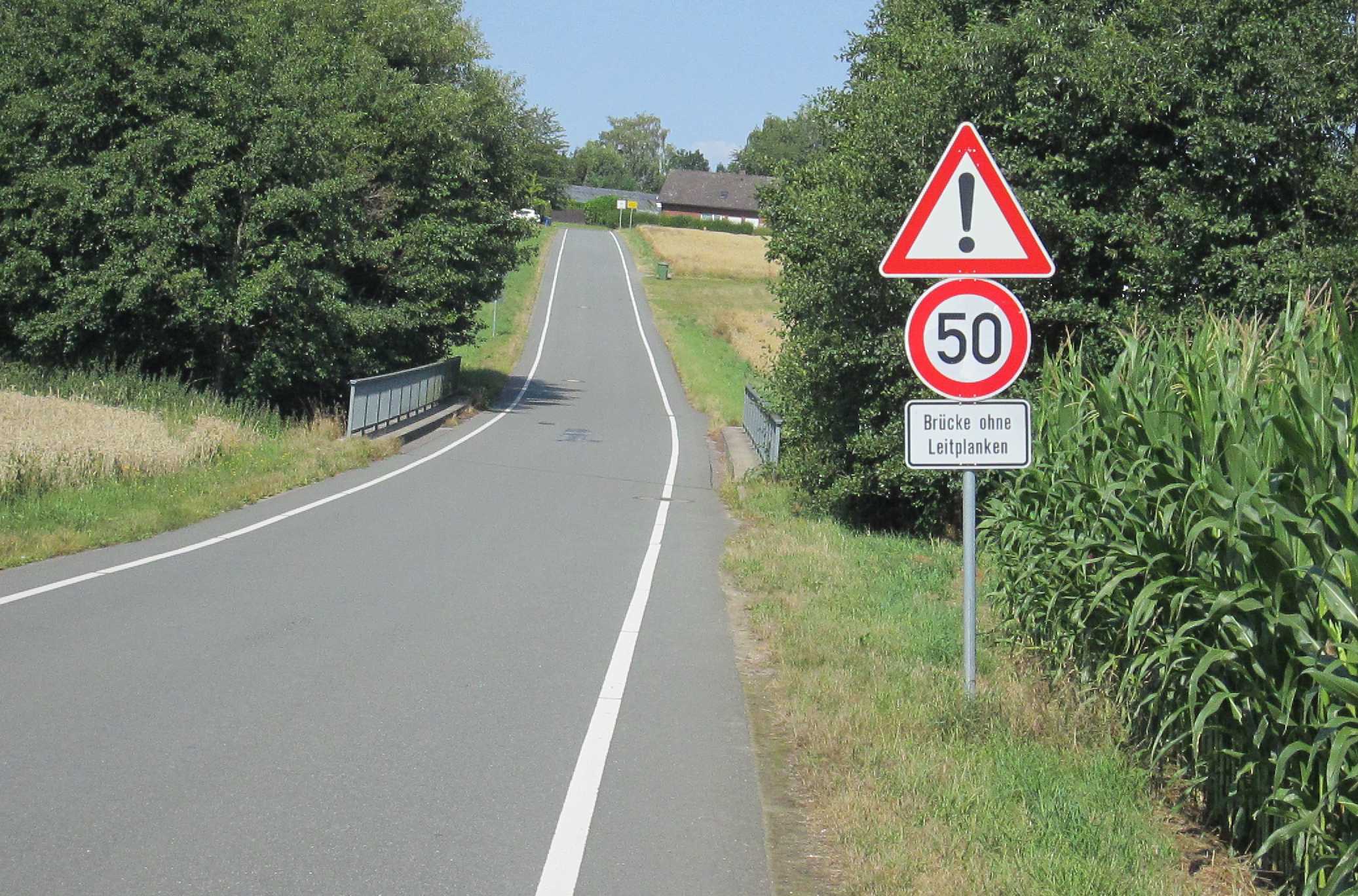 Geschwindigkeitsbegrenzung wegen "Brücke ohne Leitplanken".